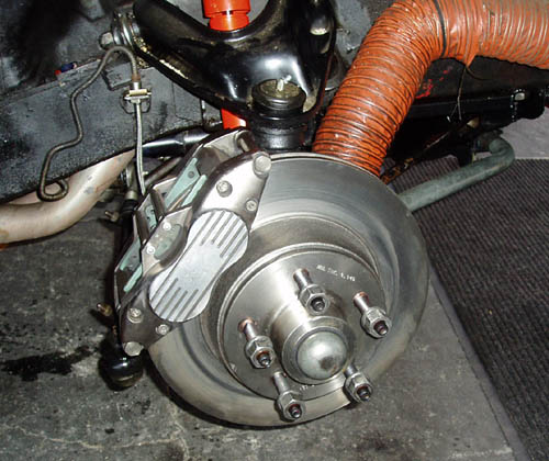 Here is a picture of the right front brake area. Taken at Laguna Seca 06, when I replaced both front rotors prior to a track session. The old rotor had a big crack in it...... |