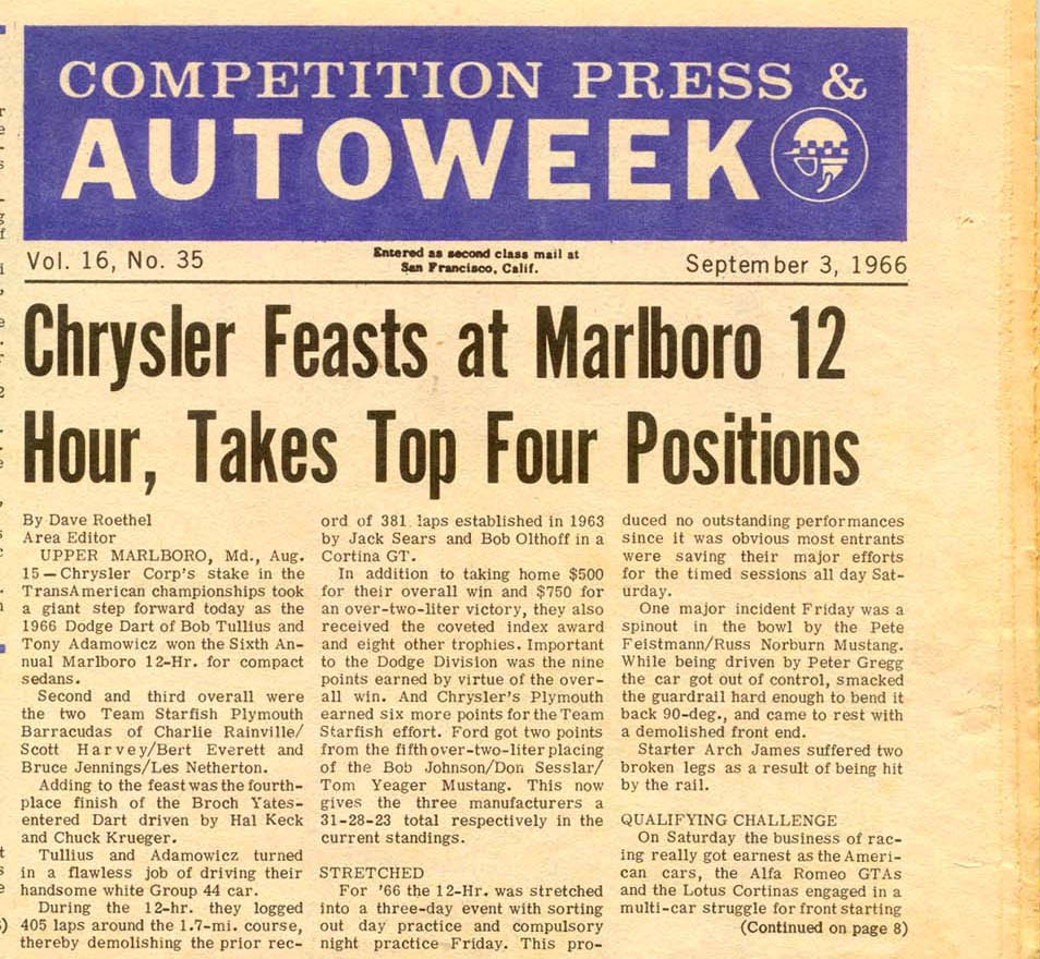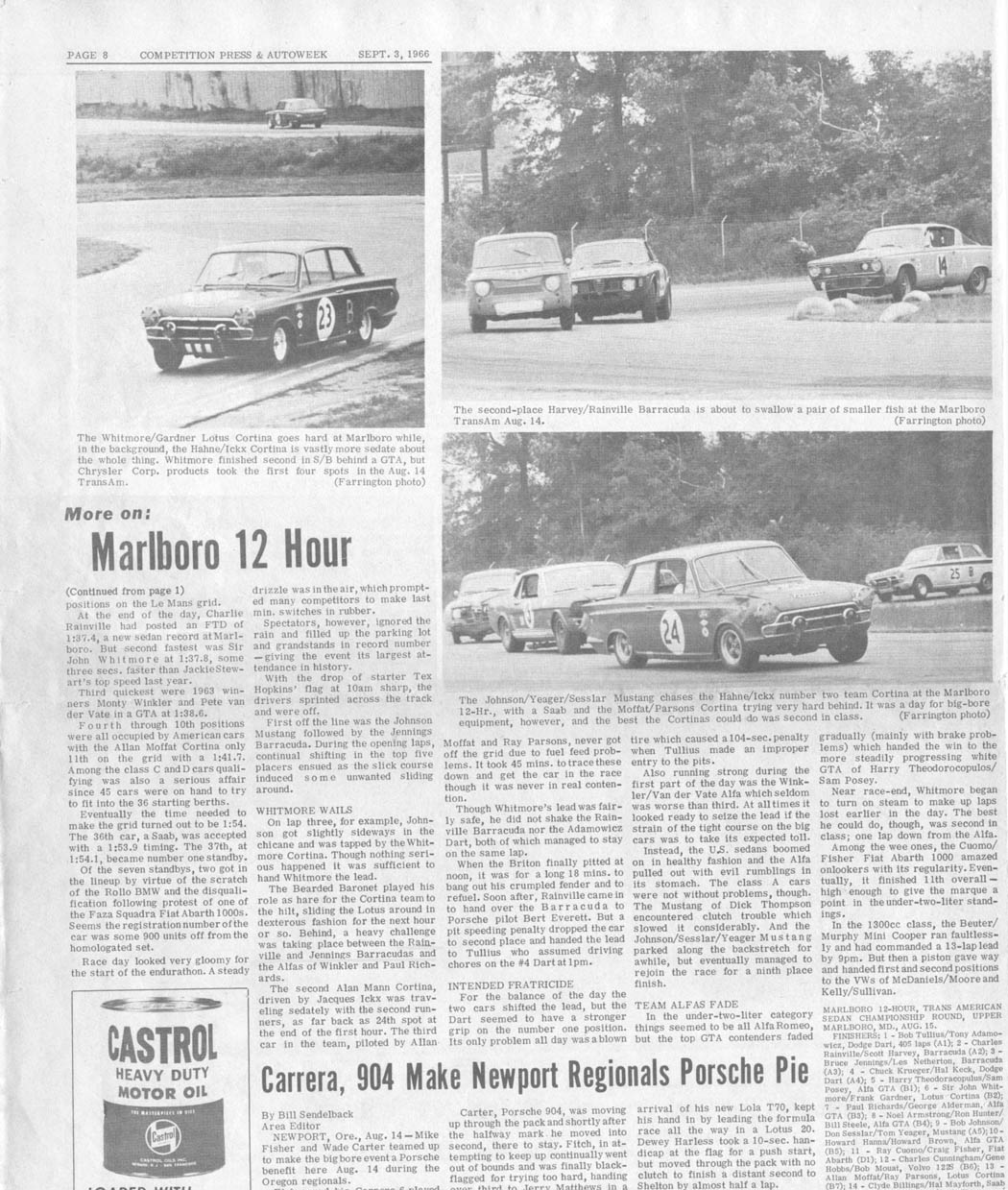 Marlboro 12 Hour Race, Sept 1966, Part I